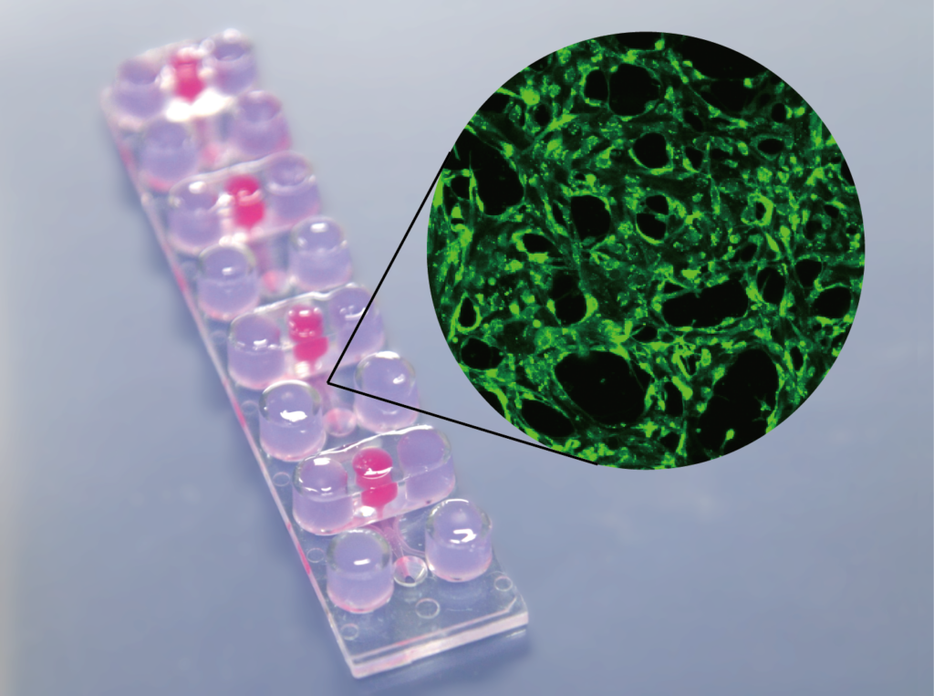 3-channelタイプにスフェロイドをトラップする構造を備えています。スフェロイドを用いた血管新生評価、がんモデルの構築が可能です。